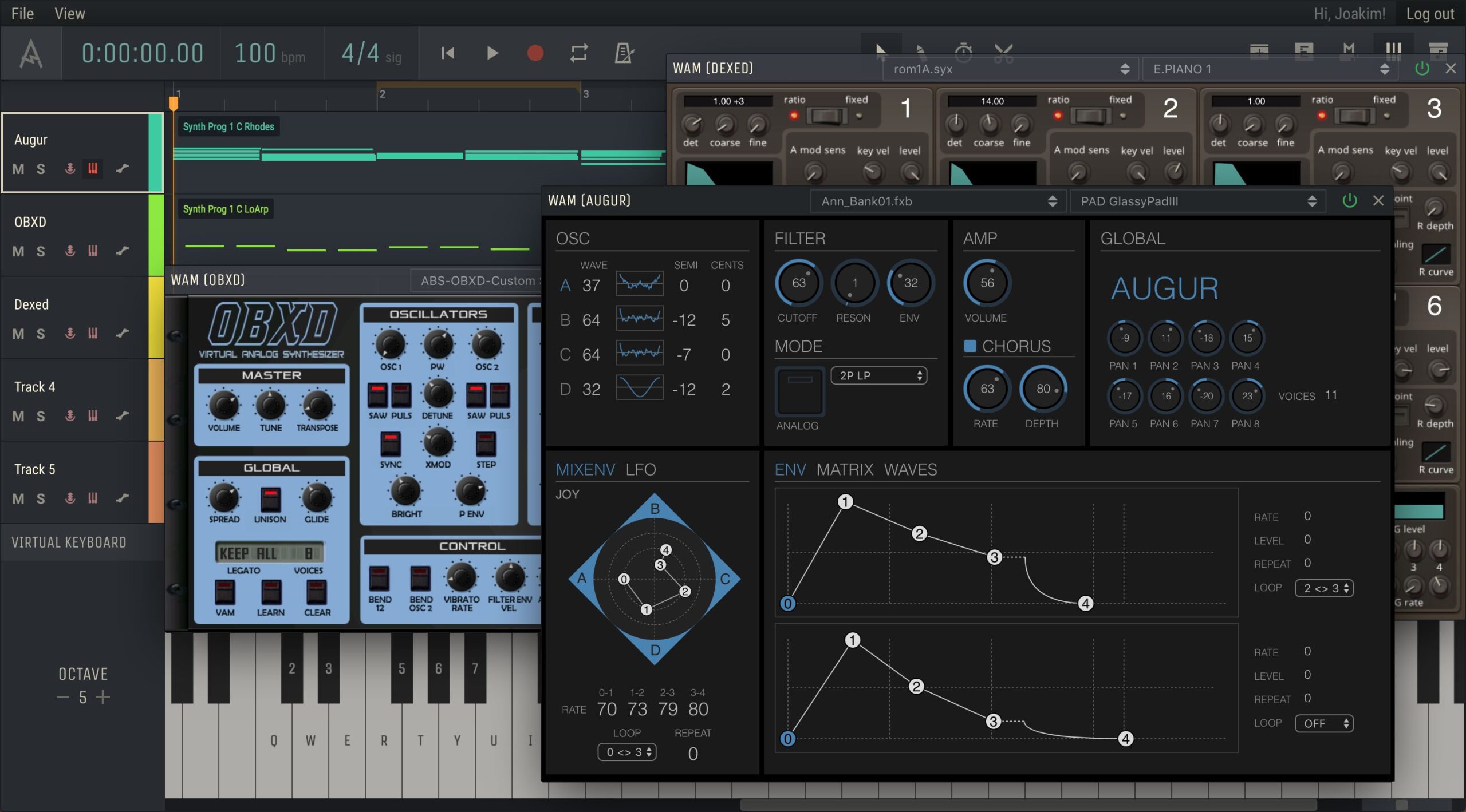 Amped Studio 2.0 now includes external virtual instruments – just like VSTs – which are produced using the all-new WAM (Web Audio Module) technology. The two free WAM instruments are OBXD and DEXED, each based on famous classic analogue and FM synths. Augur is the first commercially-available WAM instrument but, as WAM is open source, more developers are expected to release WAM instruments over the next few months. You can find more on Amped Studio's sister site WAM.fm.