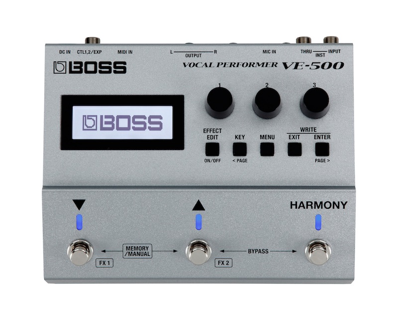BOSS announces the VE-500 Vocal Performer, a unique and powerful vocal harmony/multi-effects processor pedal. The VE-500 is a high-performance vocal toolkit with automatic harmony/pitch correction, a vocoder, and deep effects options that allow users to process their voice any way they like, from subtle sweetening to the dramatic, over-the-top effects heard on many modern records. It’s the perfect addition to the pedalboard of any singing guitarist, providing top-flight vocal processing right alongside standard guitar effects pedals.