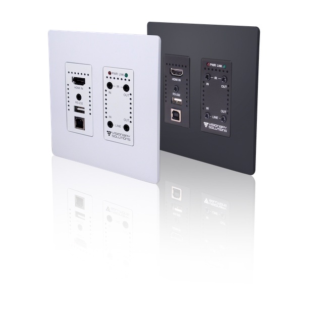 At InfoComm 2019 in Orlando, Visionary Solutions (Booth 3914) will introduce their new PacketAV™ Duet Wallplate Encoder, which provides powerful 4K UHD video and Dante™/AES67 audio encoding over gigabit Ethernet in a convenient wallplate form-factor. The new PacketAV Duet Wallplate is the only 4K UHD AV-over-IP encoder on the market that fits into a two-gang, U.S.- or UK-style back box with no modification to the electrical box, saving installers significant effort. It mounts into standard Decora-style wallplates for use in a wall, tabletop, lectern, or floor box. This form factor is very difficult to achieve because of the power requirements and associated heat dissipation of currently available IP compression technology, and only Visionary Solutions has delivered it.